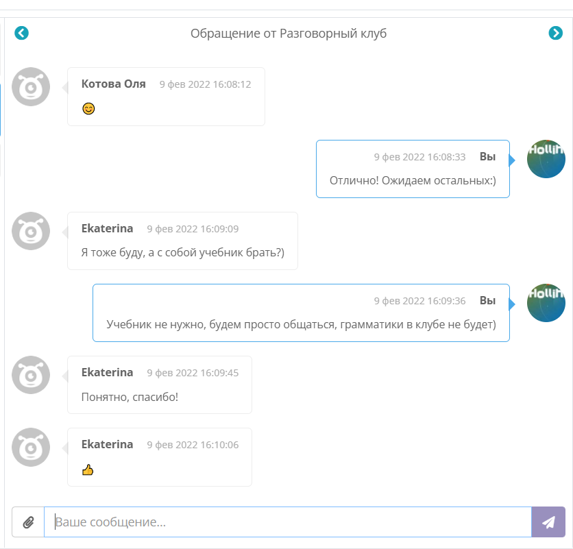 В CRM вместо имени ученика в обращении будет отображаться название чата.